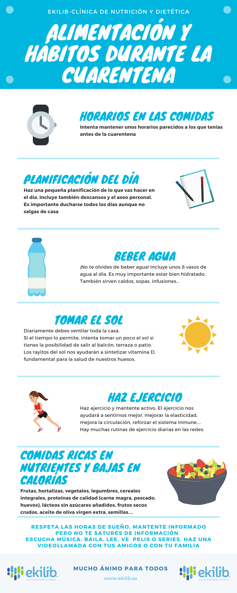 Desde Ekilib, queremos contribuir con nuestra sociedad y poner nuestro granito de arena, queremos ayudarte a que lo lleves lo mejor posible, tu alimentación sea adecuada y evitar que sumes unos kilitos de más en estas semanas.